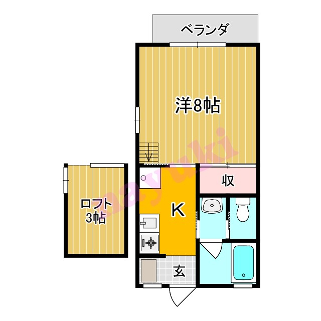 | その他 | 駐車場(近隣含む)、 プロパンガス、 フローリング、 ベランダ、 ロフト、 給湯、 照明付き |